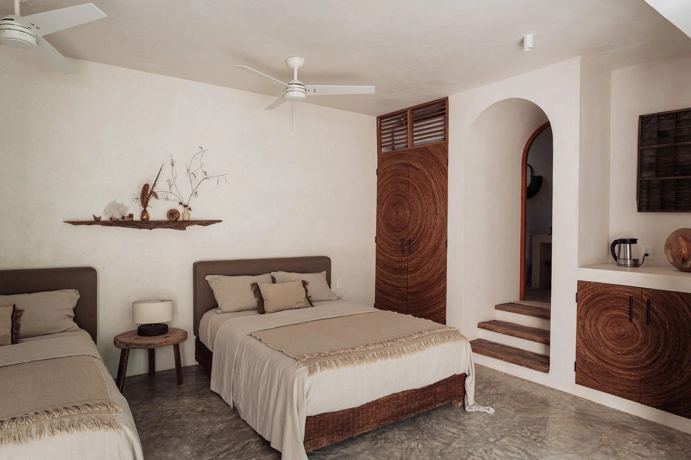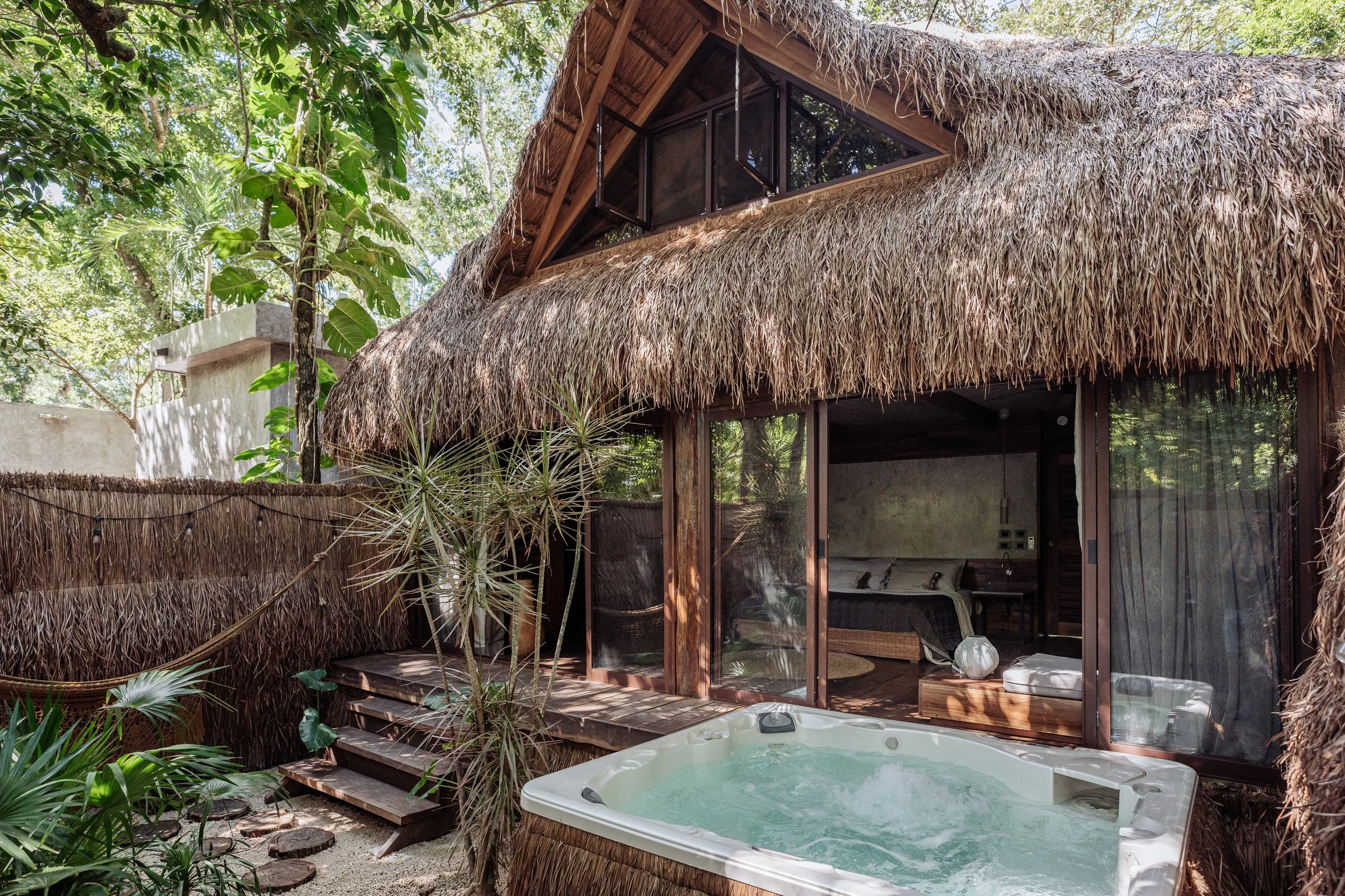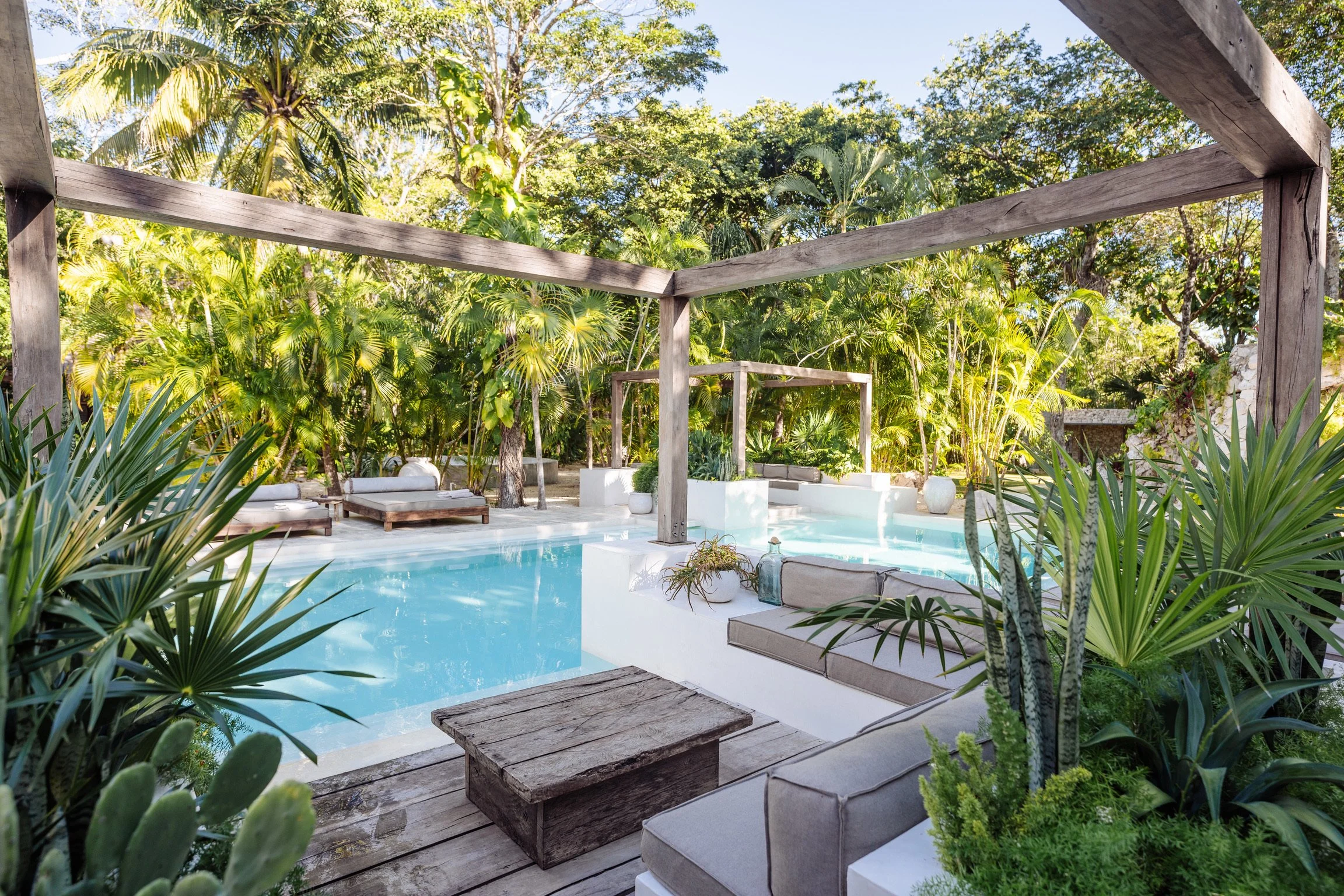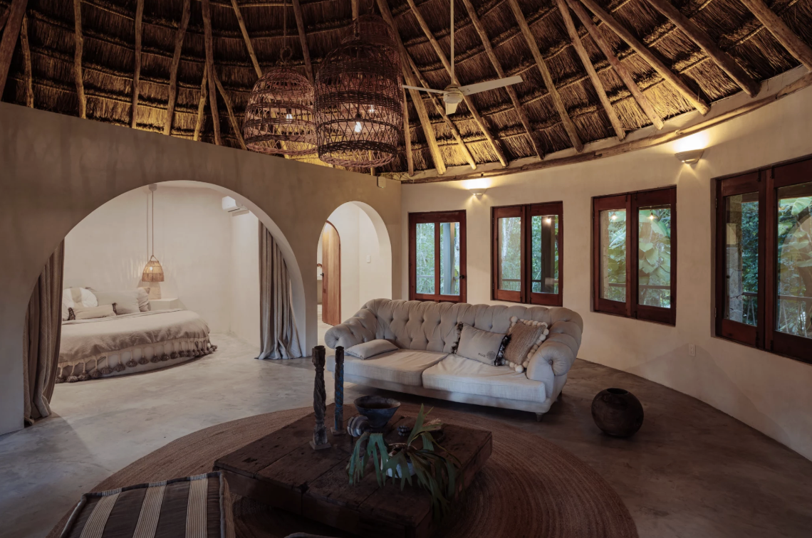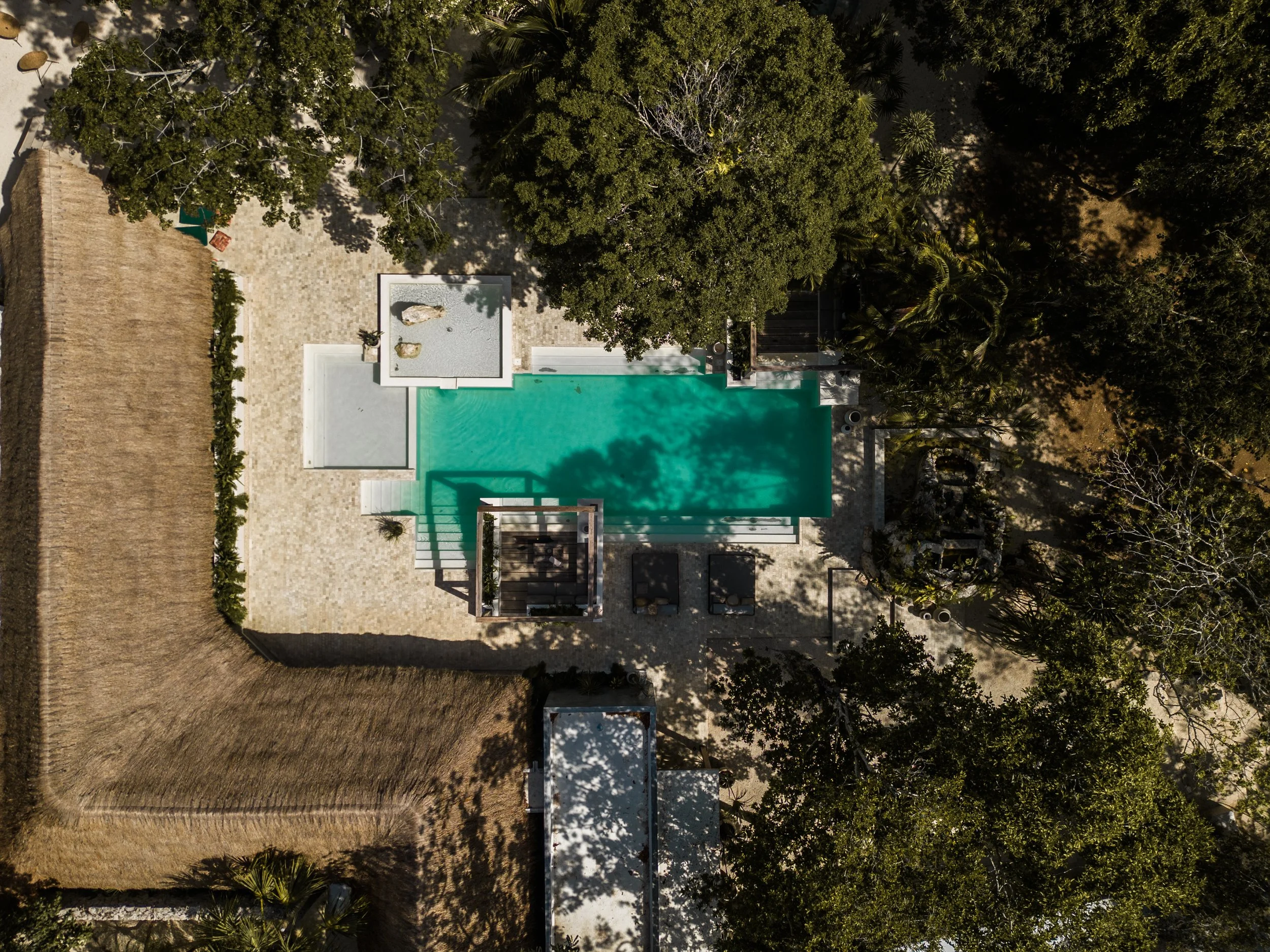 This sanctuary features seven beautifully designed villas, nestled within a peaceful, lush jungle setting. Blending elegance with local craftsmanship and minimalist design, the villas offer a serene haven for relaxation and renewal. The exceptional facilities include a pool, private underground cenote, yoga shala, cinema room, temazcal, pickleball court, fire pit, chapel, dining area, professional kitchen, and relaxation areas.